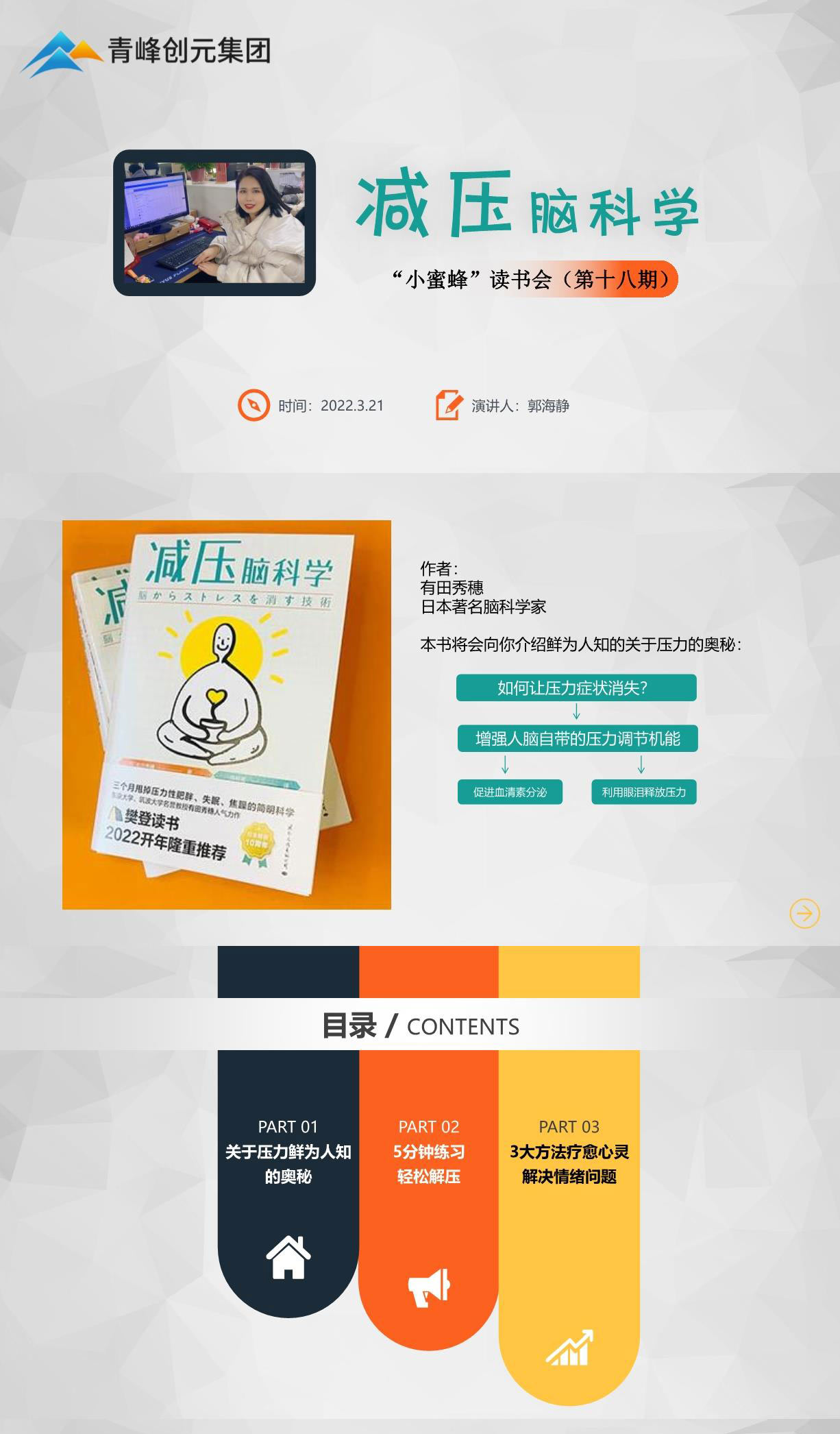 【青峰創(chuàng)元集團(tuán)】“小蜜蜂”讀書會第十八期:《減壓腦科學(xué)》---郭海靜分享