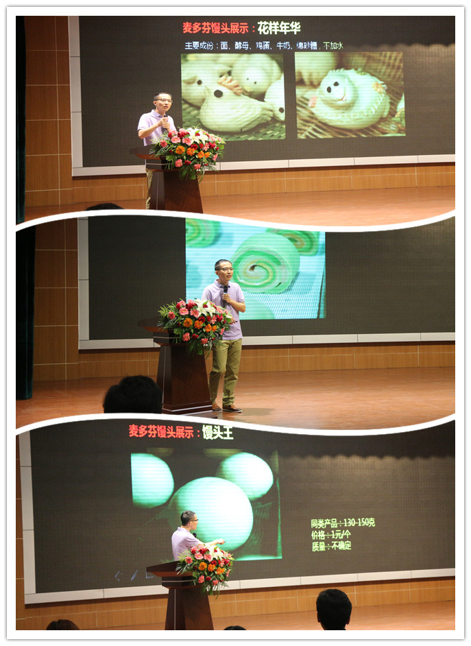 此次發(fā)布會(huì),河師大特級(jí)教師趙家剛先生作為嘉賓主持,盛裝出席,下午三點(diǎn),伴隨著趙家剛先生的帥氣登場,互聯(lián)網(wǎng)思維下的饅頭傳奇—暨“麥多芬”品牌饅頭發(fā)布會(huì)正式上演。