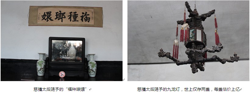 喬家大院是清代赫赫有名的商業(yè)金融資本家喬致庸的宅院,原名“在中堂”,大院為全封閉式的城堡式建筑群,建筑面積4175平方米,分6個大院,20個小院,313間房屋。外圍是封閉的磚墻,高10米有余,上層是女墻式的垛口,還有更樓,眺閣點綴其間,顯得氣勢宏偉,威嚴高大。大門坐西朝東,寓意“紫氣東來”,大門對面是磚雕百壽圖照壁。綜觀全院布局嚴謹,設計精巧,俯視成“囍”字形,建筑考究,磚瓦磨合,精工細做,工藝精湛,充分顯示了我國勞動人民高超的建筑工藝水平,素有“皇家有故宮,民宅看喬家”之說。《大紅燈籠高高掛》、《喬家大院》、《昌晉源票號》、《趙四小姐與張學良》等40多部影視劇曾在此拍攝。據說在八國聯(lián)軍攻占北京時,慈禧太后被迫逃亡,在途經山西時,盤纏所剩無已。于是慈禧要求山西的晉商捐款,當時著名的商業(yè)金融資本家喬致庸捐款數(shù)額最多,慈禧懿旨為其授匾,并且還送了兩個“九龍燈”,目前世上僅剩兩個,每個估價均過億元?!案7N嫏嬛”的意思就是喬家大院是神仙居住的地方。