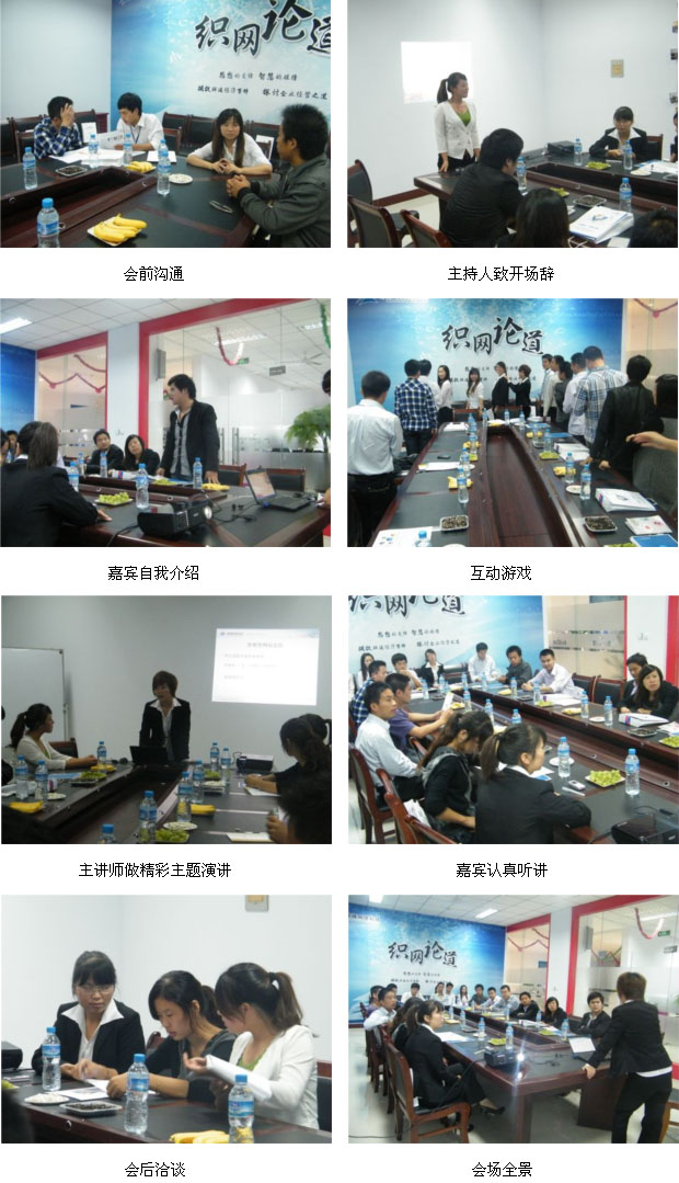 2011年9月16日,由青峰網(wǎng)絡(luò)組織的第七期織網(wǎng)論道會(huì)議在青峰網(wǎng)絡(luò)公司會(huì)議室成功舉辦。下午兩點(diǎn)半,嘉賓們?nèi)缂s而至,頓時(shí),我們的會(huì)場(chǎng)變成了“交際大舞臺(tái)”,在往期會(huì)議中認(rèn)識(shí)的嘉賓相互打著招呼,不認(rèn)識(shí)的新嘉賓在工作人員的介紹下與眾嘉賓們相互認(rèn)識(shí)。三點(diǎn)鐘在主持人甜美的開(kāi)場(chǎng)聲中,本次會(huì)議拉開(kāi)了序幕。本次會(huì)議由資深客戶經(jīng)理陳艷平女士主講,我們期待她的精彩演講。