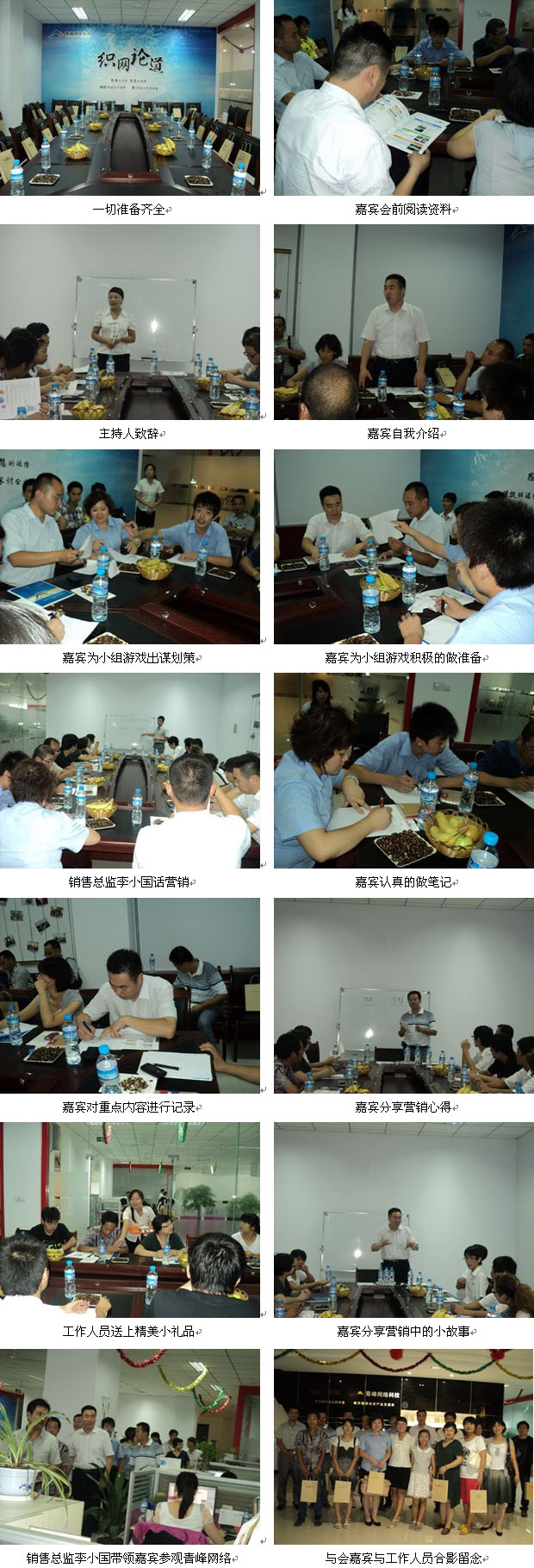 2011年7月30日,由青峰網(wǎng)絡(luò)組織的第三期織網(wǎng)論道會議如期舉行,下午兩點鐘,陸續(xù)有嘉賓到場,在到來途中偶遇的嘉賓們索性結(jié)伴同行,讓原本的陌生人逐漸熟悉了起來,頓時公司的會議室變的“活”了起來,不時的傳出嘉賓與銷售人員、嘉賓與嘉賓愉快的笑聲。下午三點,隨著主持人的宣布,會議正式開始。本次會議由銷售總監(jiān)李小國先生擔任主講,與嘉賓們共同探討中小企業(yè)的營銷之道—淺談互聯(lián)網(wǎng)的發(fā)展和企業(yè)發(fā)展之間的關(guān)系。