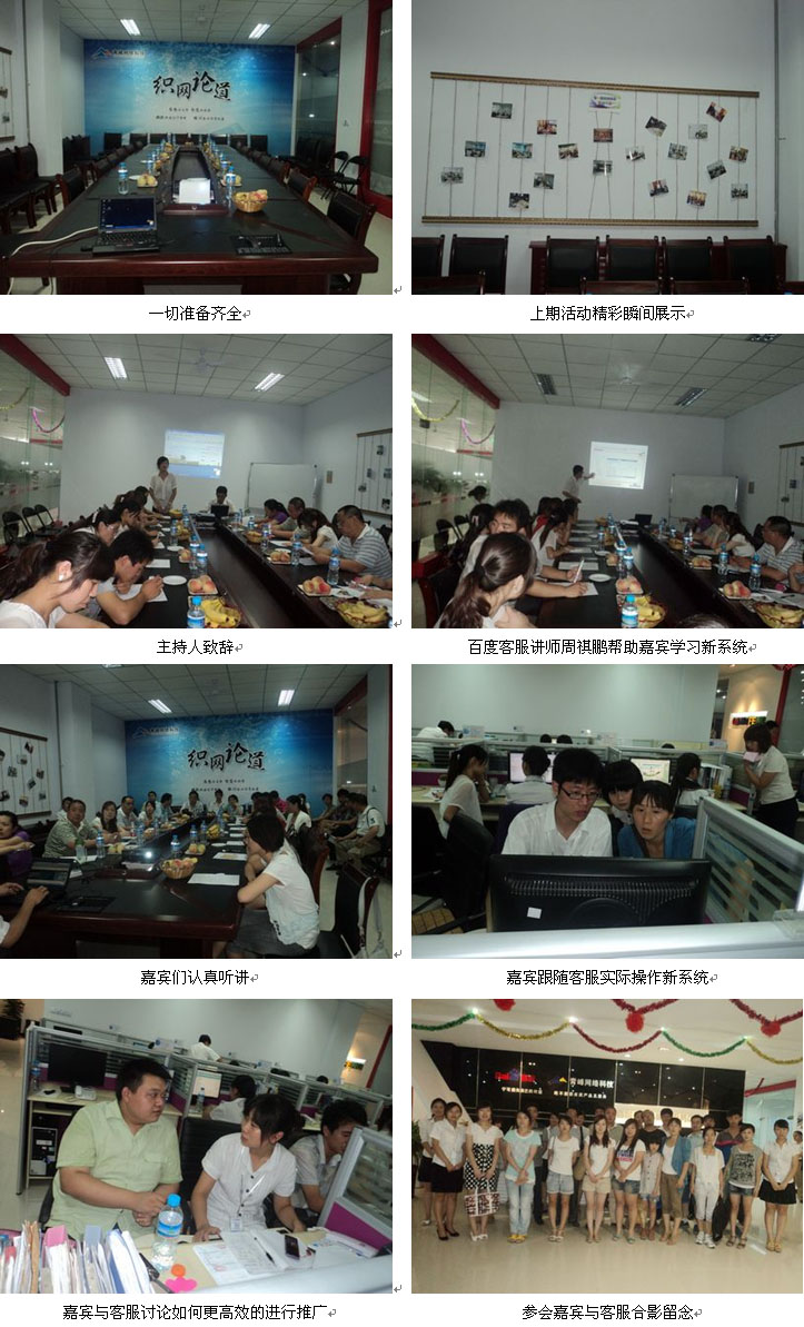 2011年7月22日,織網(wǎng)論道第二期活動(dòng)在青峰網(wǎng)絡(luò)會(huì)議室如期舉行,從下午二點(diǎn)三十分,嘉賓陸續(xù)到場(chǎng),早到的客戶與客服同學(xué)們進(jìn)行了良好的溝通。二點(diǎn)五十分,隨著主持人的出場(chǎng),會(huì)議宣布正式開始。本次活動(dòng)主要講解新升級(jí)的百度后臺(tái)系統(tǒng)。