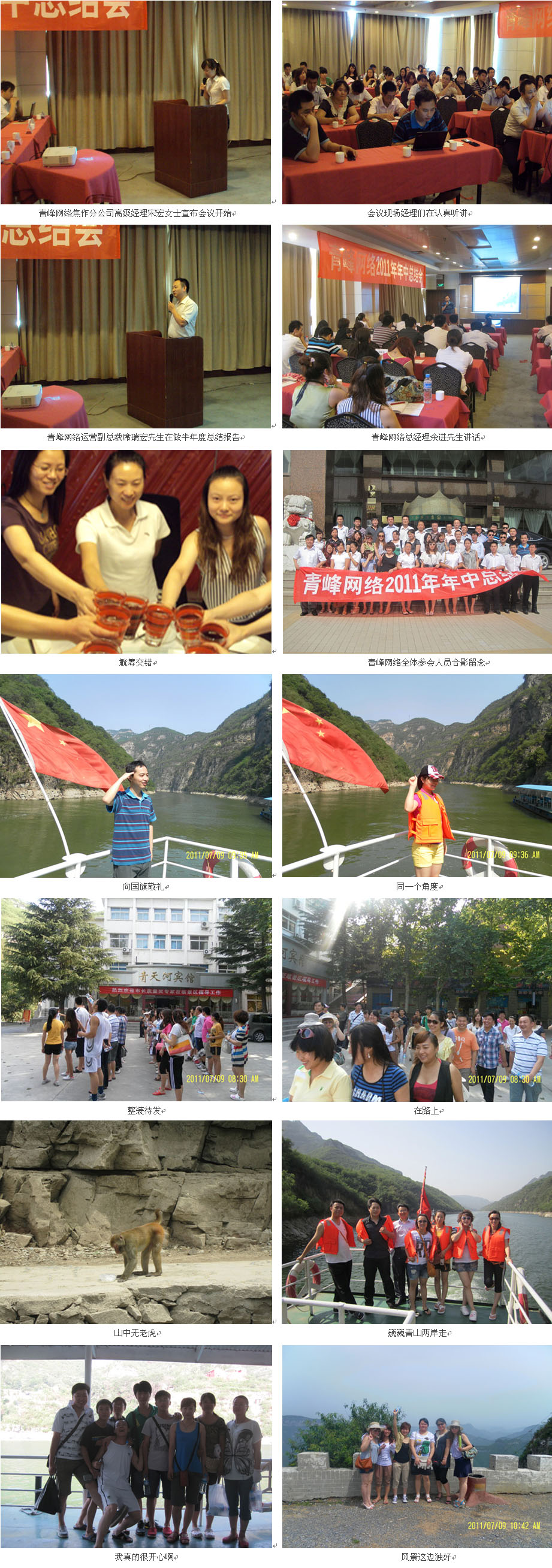 2011年7月8日,新鄉(xiāng)市青峰網(wǎng)絡(luò)科技有限公司2011年度年中總結(jié)會(huì)在焦作萬方金莎酒店隆重召開。會(huì)議由青峰網(wǎng)絡(luò)焦作分公司高級(jí)經(jīng)理宋宏主持,公司 44位管理人員參加會(huì)議。