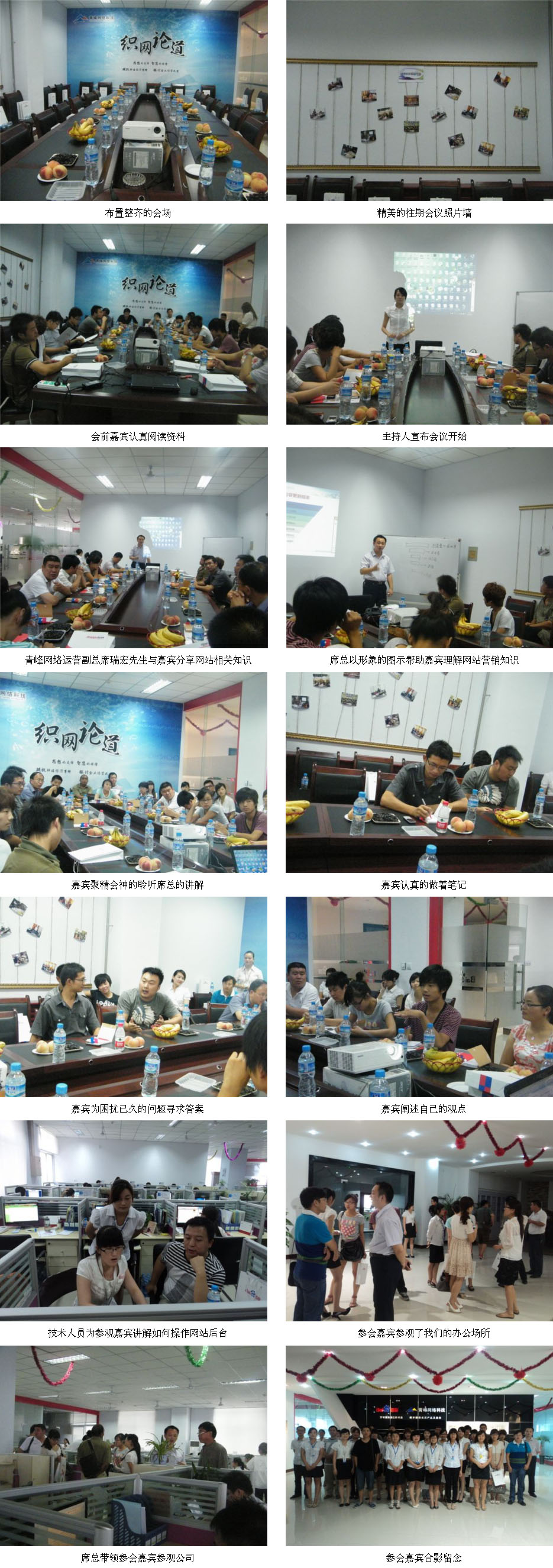 2011年7月15日,以“織網(wǎng)論道”為主題的第一期俱樂部會議在青峰網(wǎng)絡(luò)公司會議室召開,下午兩點(diǎn)鐘,嘉賓們陸續(xù)來到會場,看著裝飾一新的會議室,對這種別開生面的形式非常好奇,不斷向工作人員了解會議“內(nèi)幕消息”,兩點(diǎn)半,在客戶的翹首期盼中,主持人宣布會議正式開始。