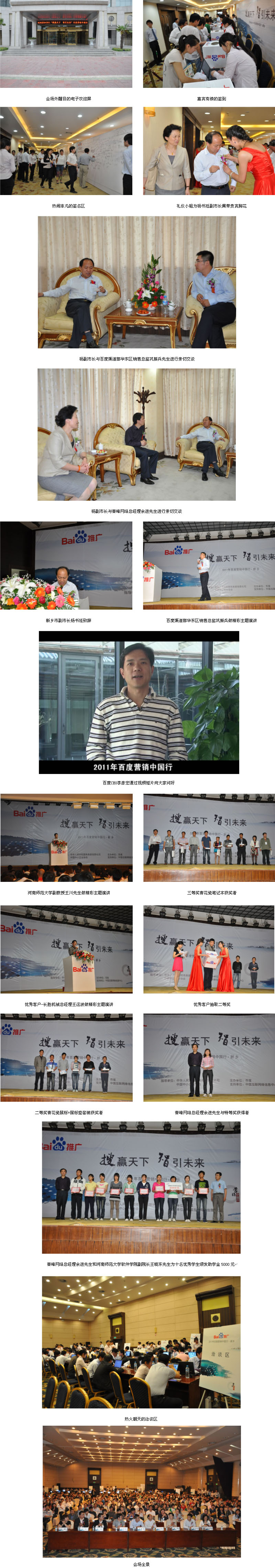 2011年5月24日,“搜贏天下?智引未來——2011年百度營(yíng)銷中國(guó)行”來到了忠臣-比干丞相的家鄉(xiāng)-新鄉(xiāng),這里歷史悠久、文化底蘊(yùn)深厚。下午一點(diǎn)半,政府領(lǐng)導(dǎo)、百度高層、行業(yè)專家,以及數(shù)百家企業(yè)代表積極參與、歡聚新鄉(xiāng)國(guó)際飯店,共襄搜索營(yíng)銷盛舉!
