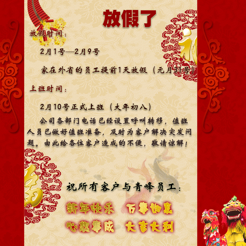 新鄉(xiāng)市青峰網(wǎng)絡科技有限公司春節(jié)放假通知