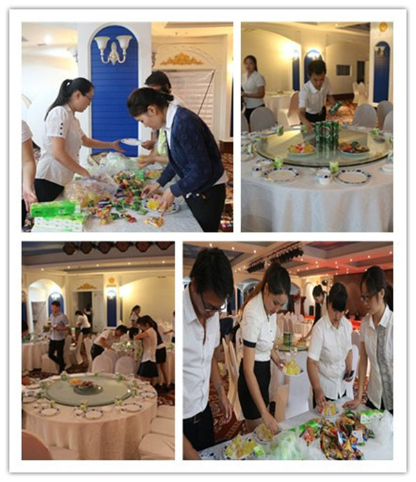 在絢爛的燈光下,輕柔的樂(lè)聲中,一群可愛(ài)的姑娘和小伙們正在活動(dòng)會(huì)場(chǎng)準(zhǔn)備晚宴的餐點(diǎn),他們統(tǒng)一著裝,遠(yuǎn)遠(yuǎn)望去可謂是一道亮麗的風(fēng)景線。小伙伴們齊心協(xié)力積極投入會(huì)前準(zhǔn)備工作,讓彼此更加深刻地感受到了我們青峰人的熱情和溫暖。
