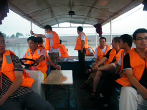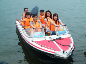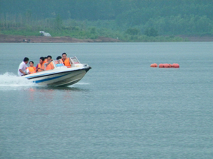 會議第二天,大家興致勃勃乘坐慢船游水庫,美麗、幽靜的水面,讓人心曠神怡,陶醉其中。隨后,大家自發(fā)的乘坐快艇,在湖面上飛馳,盡情釋放。