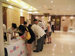 客戶陸續(xù)到場,并在簽到處認真的填寫個人資料