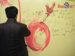 酒店醒目橫幅 恭迎嘉賓 繁忙的簽到區(qū) 客戶簽名留念 會場全景 公司領(lǐng)導致辭 嘉賓踴躍參答 百度客戶服務區(qū)域經(jīng)理張弦做精彩主題演講 圓聚 嘉賓代表祝福百度 百度十歲了 公司領(lǐng)導與百度領(lǐng)導共同吹熄許愿之燭 本土特色促銷禮品展示 百度客服齊唱“明天會更好” 會議最后在一片歡聲笑語中結(jié)束,通過這次會議,將客戶與百度的距離拉的更近了,更是增強了客戶對百度信任。面對即將到來的2010年,百度仍將不負眾望,努力回報廣大客戶的支持與信任。相信眾多的中小企業(yè)也會繼續(xù)把百度當做堅定的長久的合作伙伴,在新的一年里和百度一起蓄勢待發(fā),再創(chuàng)輝煌!