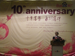 12月25日下午三點三十分,“十年蓄勢 再創(chuàng)輝煌”—百度客戶答謝會在新鄉(xiāng)市國際大酒店隆重舉行。在這個百度十周年即將到來的日子,天氣也格外的晴朗,客戶熱情高漲,整場會議氣氛熱烈。