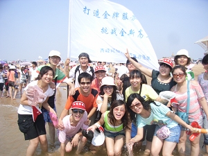 為了慶祝青峰全體員工在專業(yè)版上線之后的出色表現(xiàn),為了讓在09Q2中努力拼搏的戰(zhàn)友們好好放松一下,為了在09畫上一個圓滿的逗號,7月3日下午在余進(jìn)總經(jīng)理的帶領(lǐng)下從新鄉(xiāng)啟程去游覽那風(fēng)景秀麗、氣候宜人、物產(chǎn)豐富的日照。夕陽、海風(fēng)、螃蟹、燒烤――到日照吃海鮮去。歷經(jīng)了長長的9個小時,我們到達(dá)了因“日出初光先照”而得名的日照。