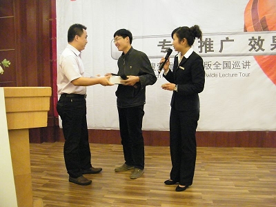 百度服務(wù)管理部區(qū)域經(jīng)理張弦先生為獲獎(jiǎng)來(lái)賓頒獎(jiǎng)