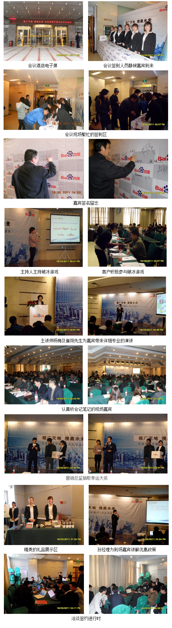 2011年3月18日,“框廣天地 搜贏未來”--百度營銷中國行企業(yè)交流會在安陽飛鷹賓館舉行。該賓館坐落于安陽商業(yè)金融區(qū),店內(nèi)設(shè)施大氣,裝潢賞心悅目,非常適合舉辦大型營銷會議。安陽青峰的銷售精英們早早就做好了各項準(zhǔn)備,希望在開年第一場營銷會上能取得開門紅。有效幫助安陽地區(qū)中小企業(yè)贏得有利商機(jī),推動銷售業(yè)績增長。一百多名企業(yè)家共聚一堂,與百度共話搜索營銷新趨勢。接下來便帶您進(jìn)入營銷世界的活動現(xiàn)場!