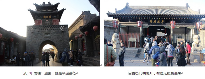 經過六個多小時的車程,我們抵達了中國四大古城之一的平遙古城。平遙古城位于山西中部,是一座具有2700多年歷史的文化名城,與同為第二批國家歷史文化名城的四川閬中、云南麗江、安徽歙縣并稱為“保存完好的四大古城”,也是目前我國以整座古城申報世界文化遺產獲得成功的古縣城。鳥瞰平遙古城,形同一只欲行未動的烏龜,“龜”頭南尾北,東西四門比擬為龜之四足,民間故有“龜城”之說。南門之外,古有中都河水蜿蜒而過,從而引發(fā)了古代文人“龜前戲水,山水朝陽,城之攸建,以此為用”的感慨。烏龜是吉祥、長壽的象征,“龜城”之說源于古人對“四靈”的崇拜,“龜城”寓意固著金湯,長治久安。走進古城,一股厚重的歷史氣息撲面而來??粗哌_12米的城墻,看著結構整齊的磚石結構,不得不讓人驚嘆古代勞動人民的血汗與智慧,在生產工具落后的情況下,建造起如此雄偉的防圍,來保護自己的家園。西風烈烈中,城墻上的角臺、城樓在訴說著當年的廝殺血拼,此時,忽然寒風四起,雪粒紛飛,令人不禁頓起滄桑悲涼之感。