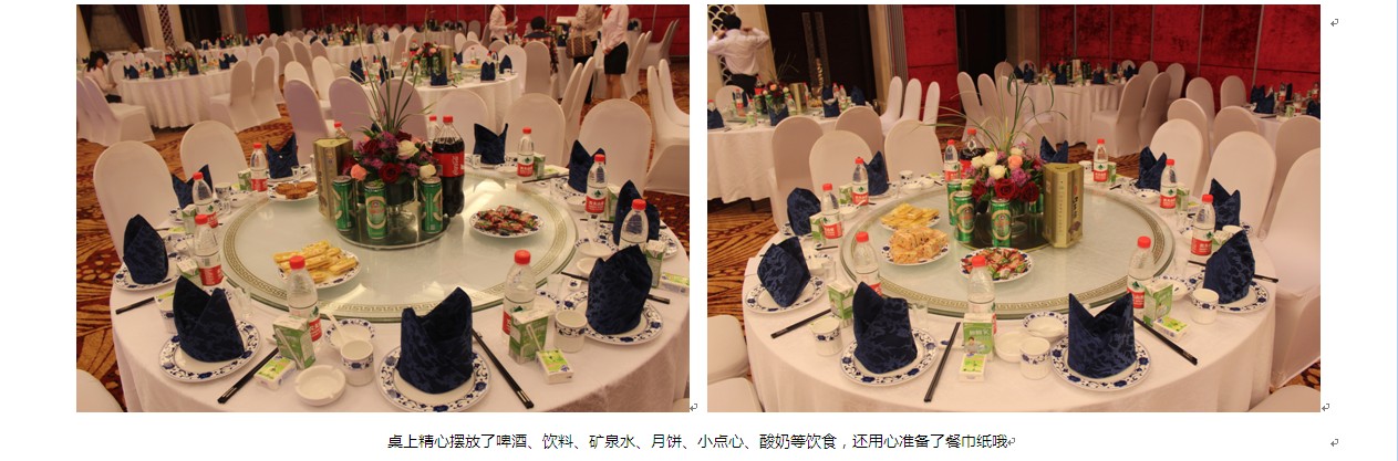 本次活動,舞臺背景使用大屏幕LED,效果絢麗多彩??蛻糇郎暇臄[放了啤酒、飲料、礦泉水、月餅、小點心、酸奶等飲食,還用心準(zhǔn)備了餐巾紙。會務(wù)人員安排井然有序,游戲環(huán)節(jié)新穎勁爆,促銷政策激動人心,續(xù)費抽獎火熱爆棚、熱烈的客戶互動、真誠的客戶感言。無論是酒店檔次,舞臺效果還是節(jié)目的精彩程度都讓在場的客戶朋友們充分感受到了新鄉(xiāng)百度人的熱情和真誠。